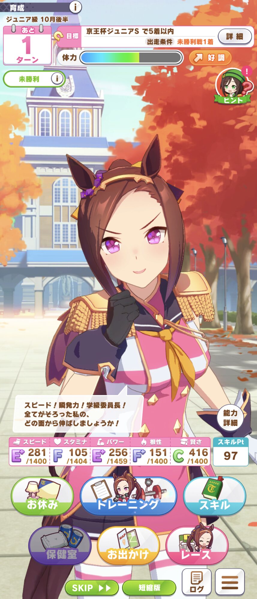 1だけど一番楽しかった6積みはカフェでスタミナかなぁ…スピ賢パワ根スタと全部やったけど