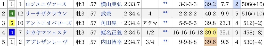 競馬そこそこ詳しくなったと思ってたけど、ロジユニヴァースはともかく皐月と菊花の馬全く聞いた事なかったもん……