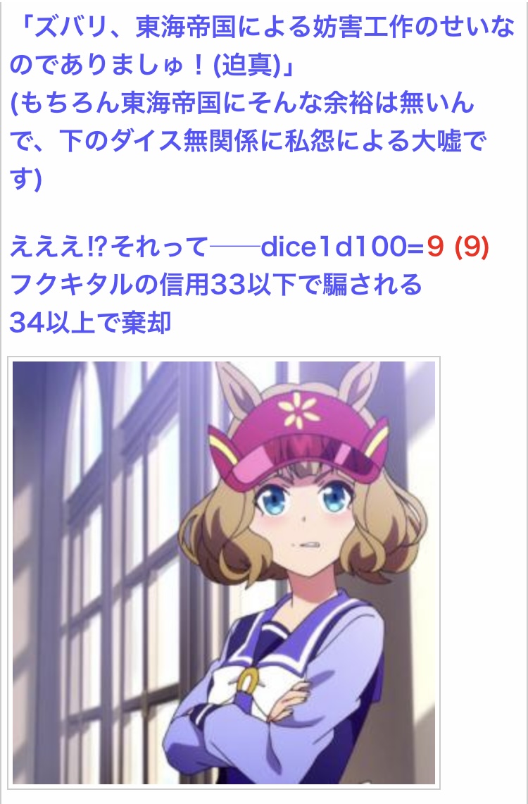 低めの信頼度を徹底的にぶち抜き続けるダイスで死ぬほど笑ってた