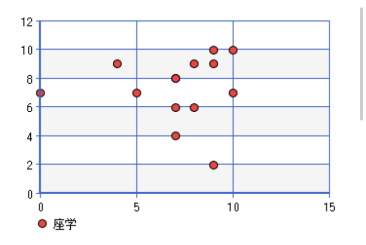 まずこちらが呪術センスと座学の散布図