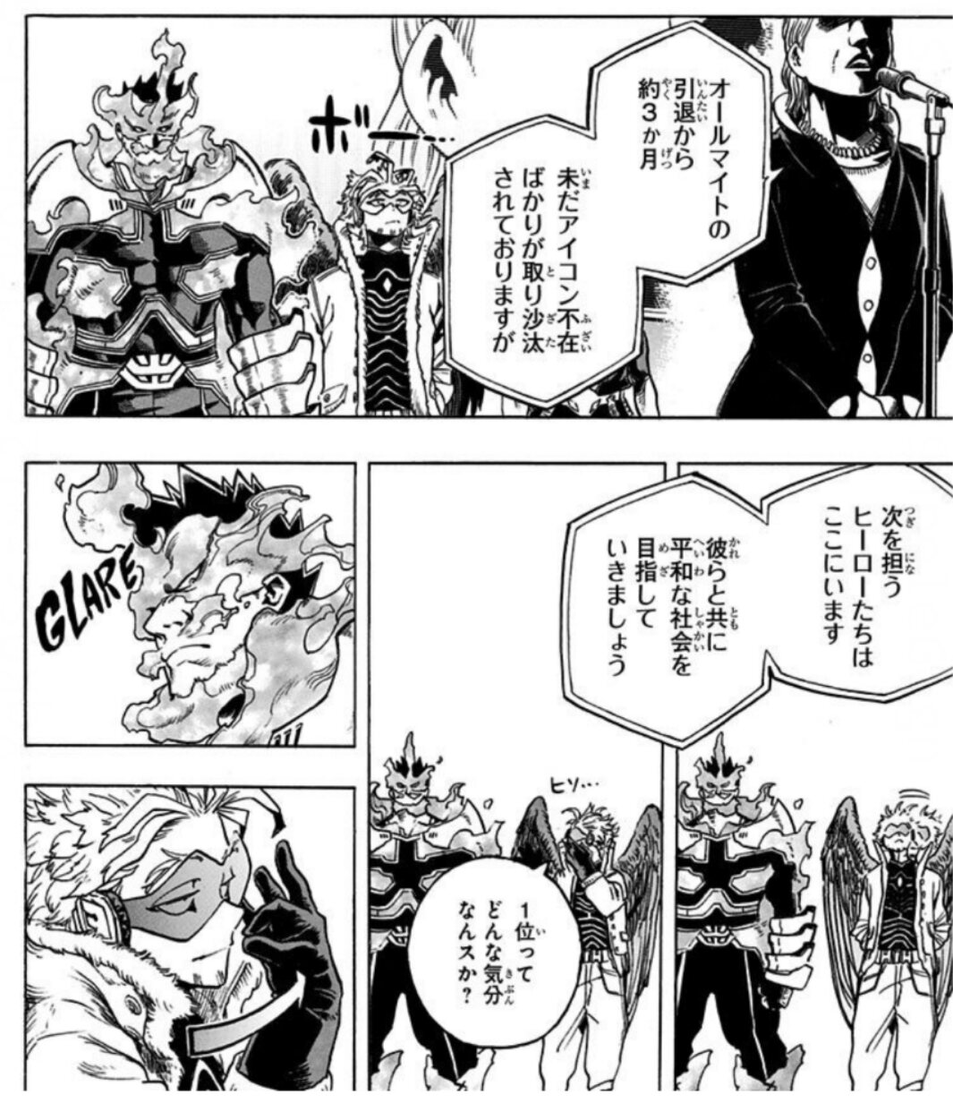 エンデヴァー1位ホークス2位ジーニスト3位での平時での活躍をヴィランとの全面対決の前に見たかったな