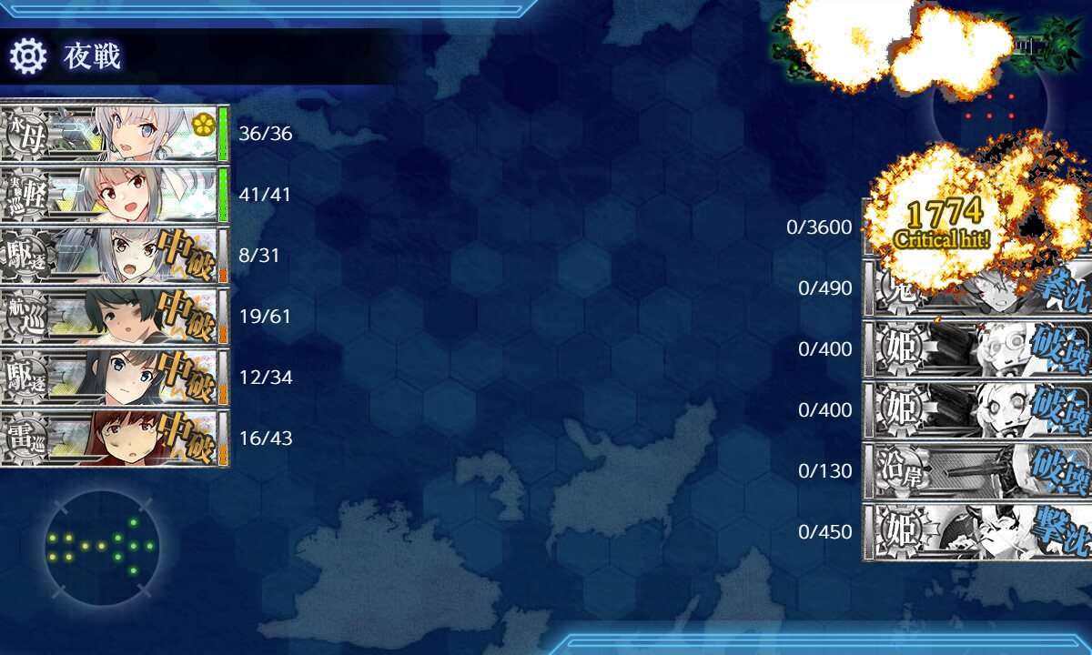 基地・支援・航空戦でナ級含む第2が高確率で壊滅する、また味方空母の生存率も高いという安定した戦闘でした