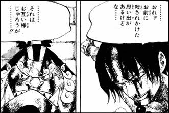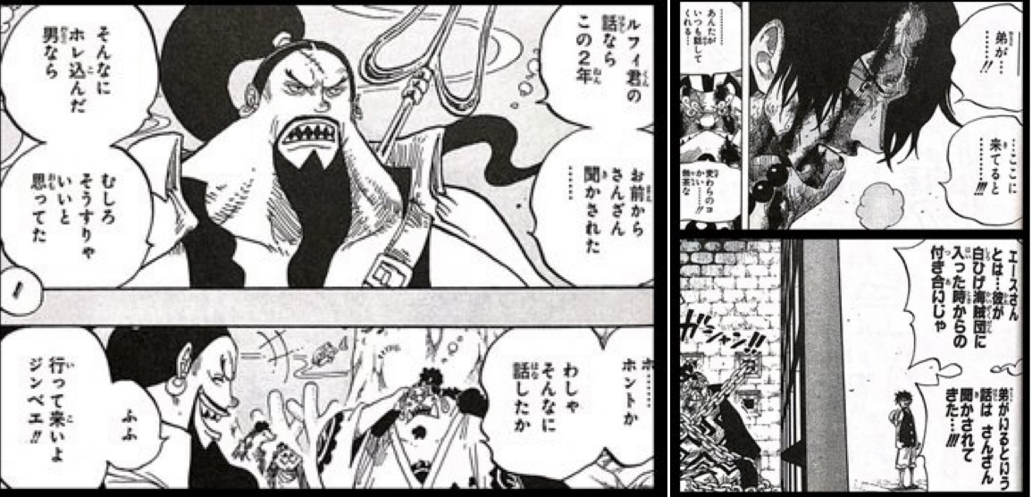 初対面が人斬りナイフみてェな小僧って印象でジンベエの親分の方が年上なのにエース「さん」呼びなのいいよね
