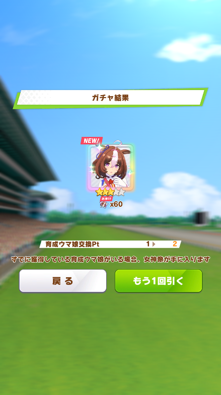 ドネーションが難しいのは、お馬さんの誕生日って大体同じ季節に集中してるから、複数やると寄附金額が分散しちゃうのよね