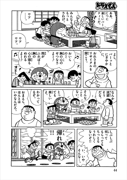 野球誘ったり(人数合わせだろうけど)、結婚前夜に飲み会開いてのび太も参加してたりとなんだかんだ仲良いよな