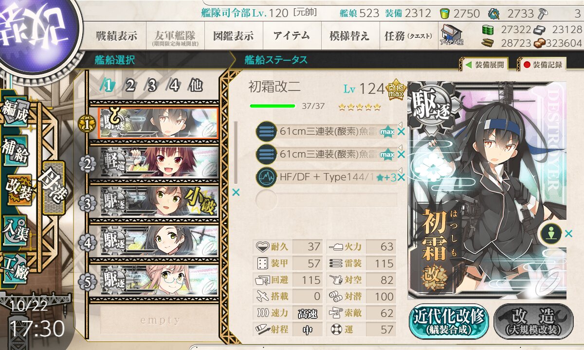 うーむ、イベント後で遠征が途切れがち。週任務ちゃんとやってる人はあ号とかキラ付けで大体消化してるんだろうけどあ号サボり癖が長いことついてるとなかなか上手く回らんもんだw