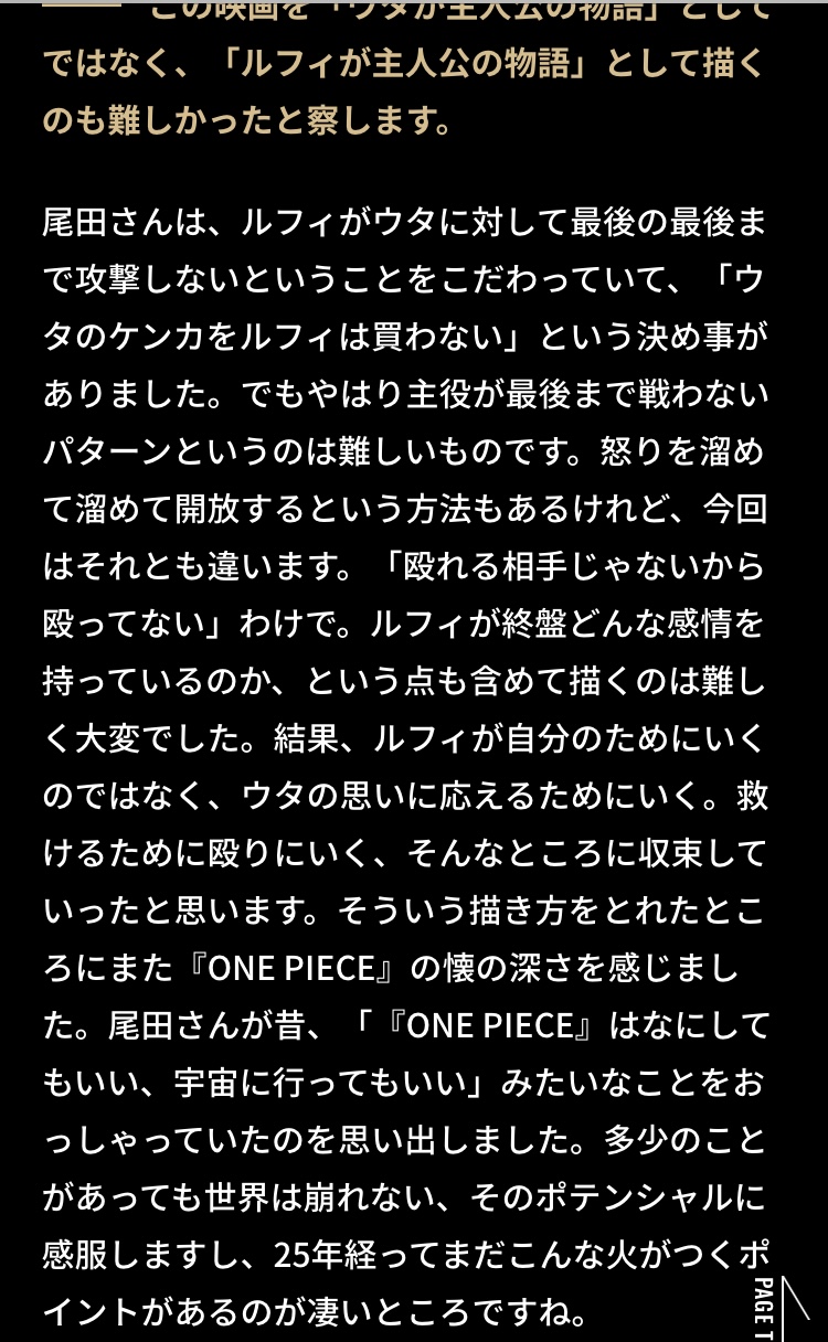 人を選ぶだろうけど、シャンクスが最初ウタを置いて行こうとする過程は大部解釈一致だった。