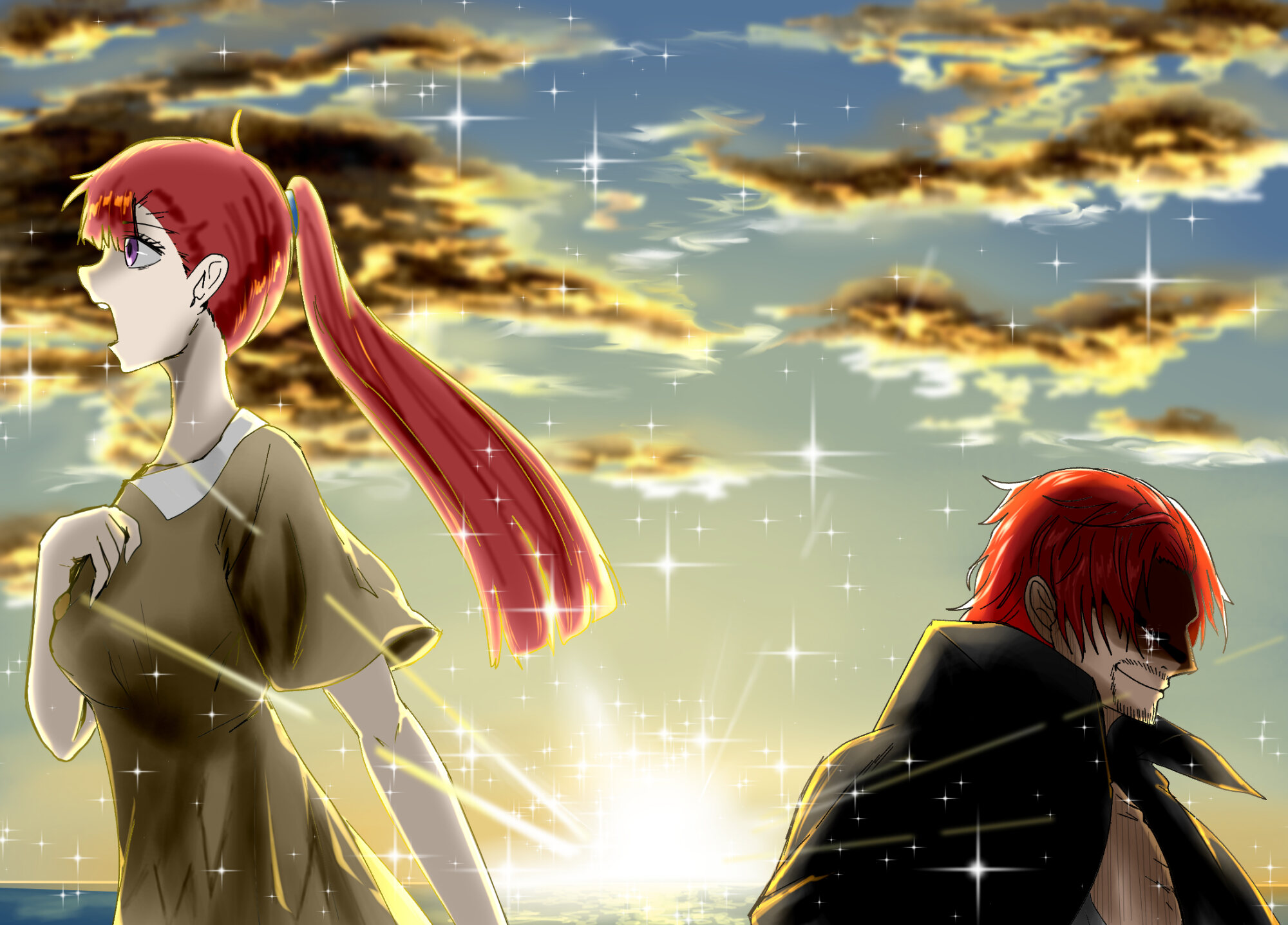 赤髪の男もまた、彼女に振り返る事は決してない。どれだけ娘と似ていようと、彼女は彼女という一個人であって娘ではないのだ。振り返れば彼女を“娘”として見ている事になってしまう。