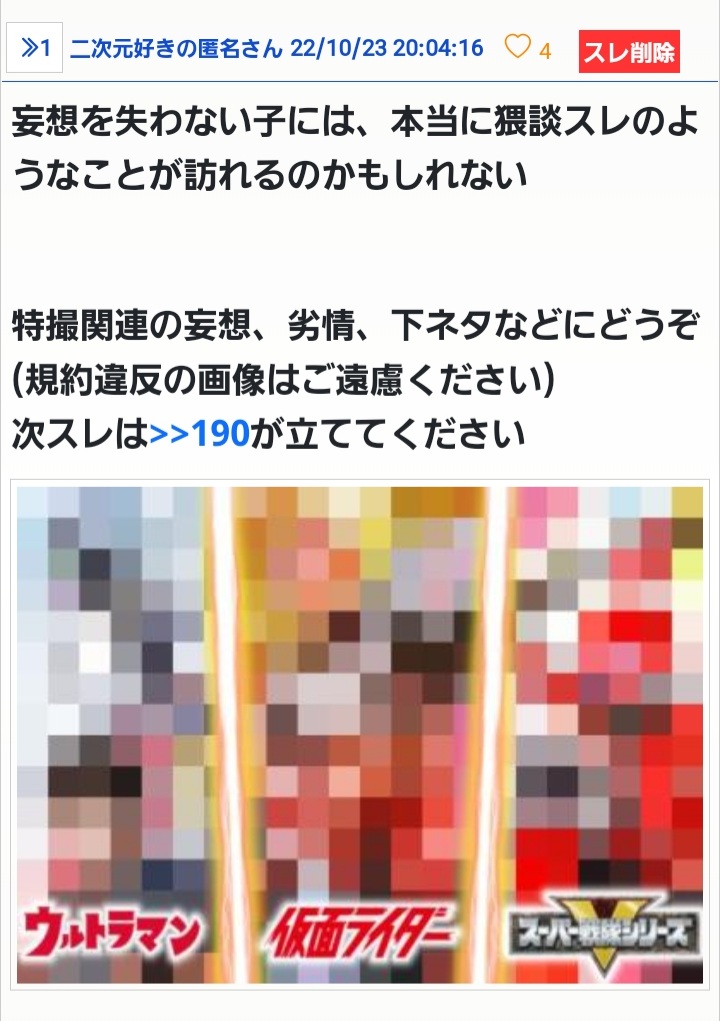 特撮カテ雑談スレ5(X)|あにまん掲示板勝利のライトカンバゼーション!特撮関連の相談、質問、一発ネタなどにどうぞ次スレは>>195が立ててくださいbbs.animanch.comスレタイ用