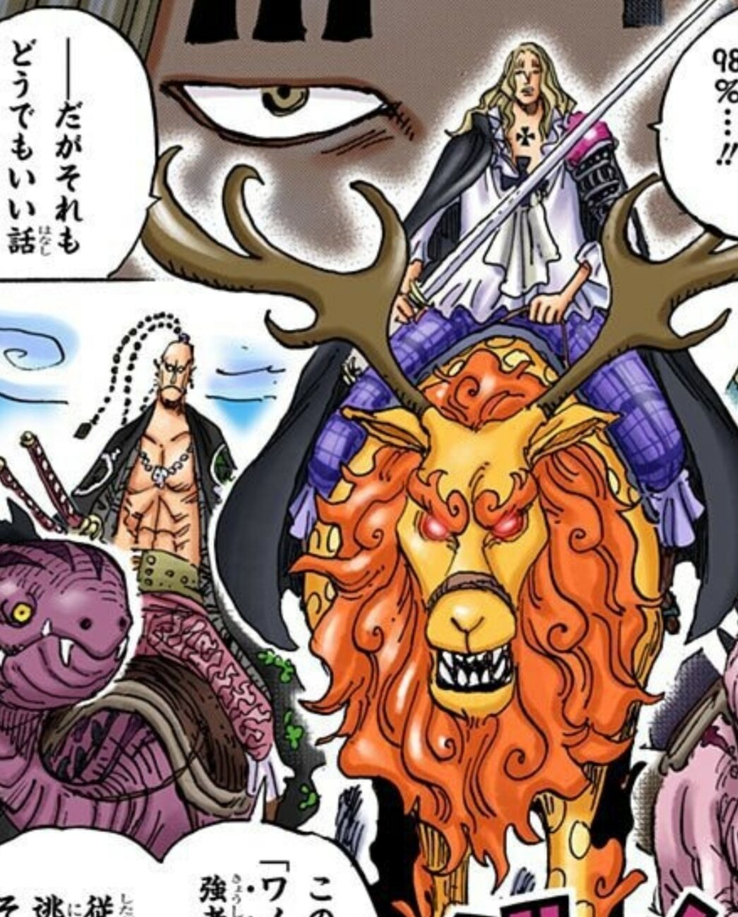 ワノ国でまわりがトカゲっぽいのに乗ってるなかホーキンスだけ狛鹿乗ってたの、
