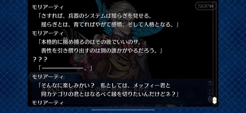 モリアーティは作中で効果発揮してるのか微妙なとこあるけどセイレム前にメカエリチャン加入させるとか2部の前にエルキドゥ強化?させたりメタ的にはだいぶありがたいことしてる