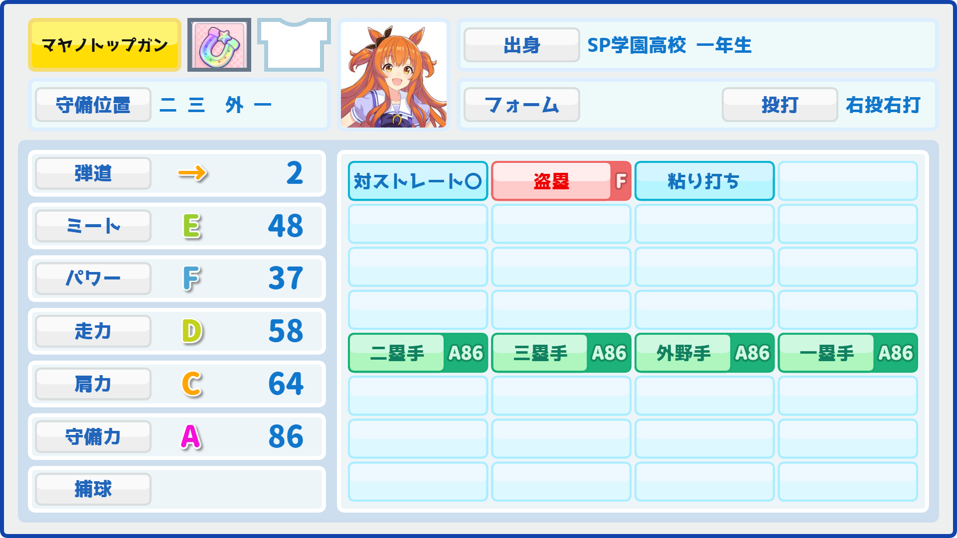 (一塁(A86) 二塁手(A86) 三塁手(A86) 外野手(A86)に成長)