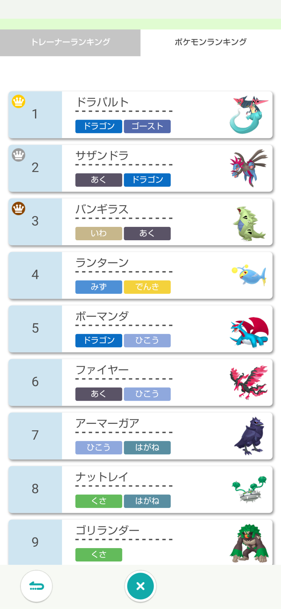使用率150位以内に入っていない自分が使ったポケモンがいるから、使用ポケモンも結構バラけたんだな