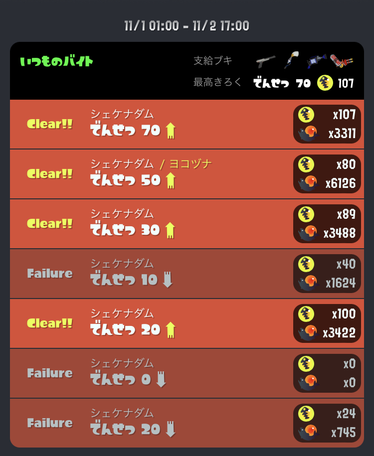 野良専で500回以上やって倒したオカシラシャケ一桁だったの笑う