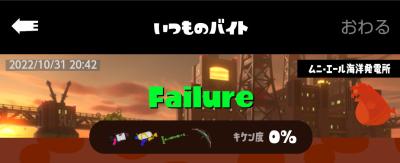 ノルマまであと一個なのに金シャケ全然湧かなかった挙句残り10秒ぐらいでクッソ素早い奴湧いてノルマ失敗した
