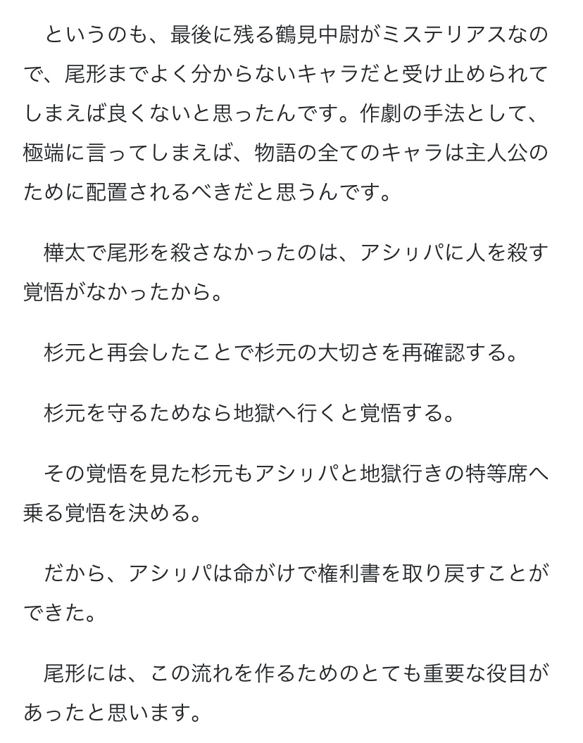 尾形の裏設定は色々考えてはいたけど横道に逸れすぎるのでほぼカットして最期だけは丹念に描写しました!って印象