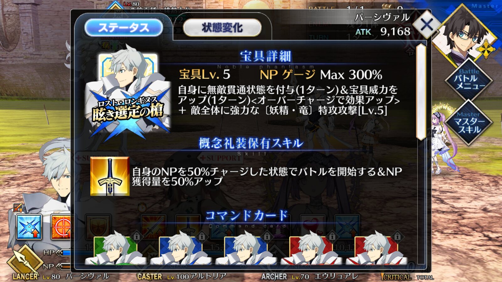 普通に使う分には宝具攻撃した後に3000って出る - 37122/11/02(水) 22:45:30