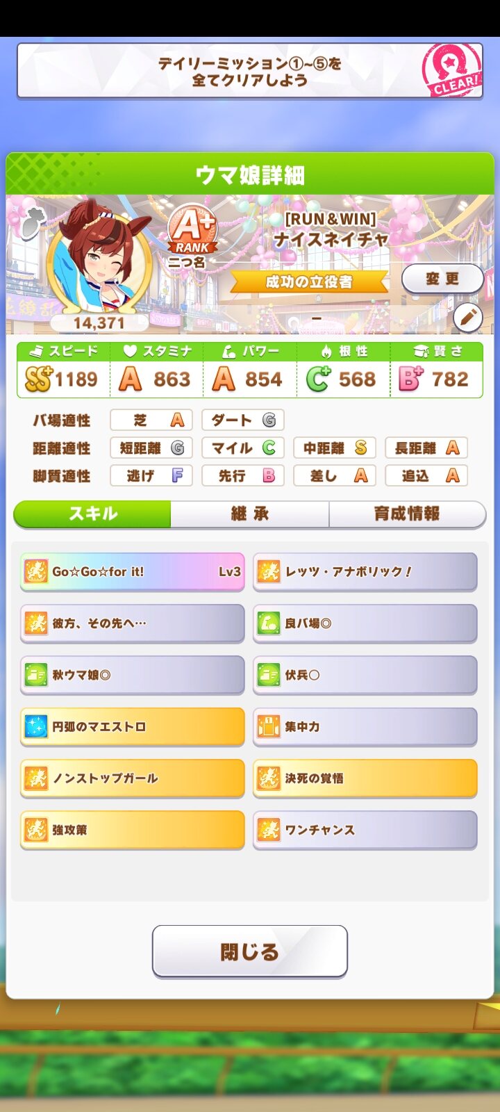 目クソ鼻クソみたいなこと聞くけど追込ゴルシに継承ミラクルラン入れてみようと思ってて下校とマエストロは確定として後の1つは後方待機と冷静どっちがいいかな…?