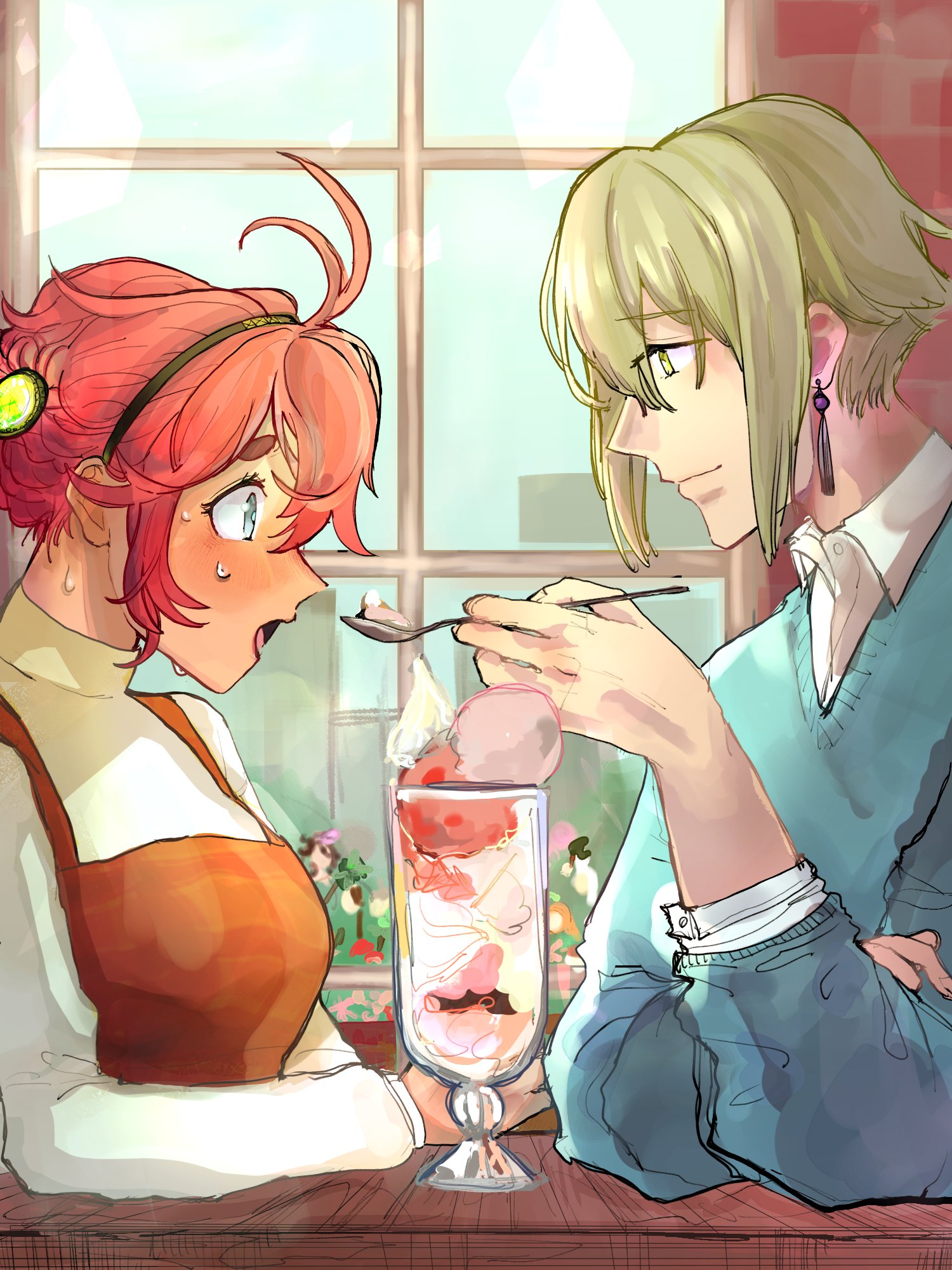 「はい」(パフェを掬ったスプーンを差し出す)