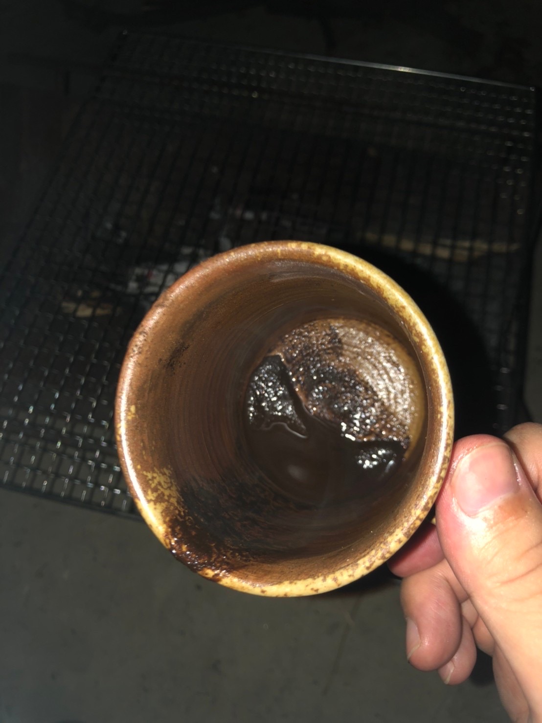 ─粉挽きたてだからね!……底の方に粉が溜まるから、上澄みだけ飲んでね。