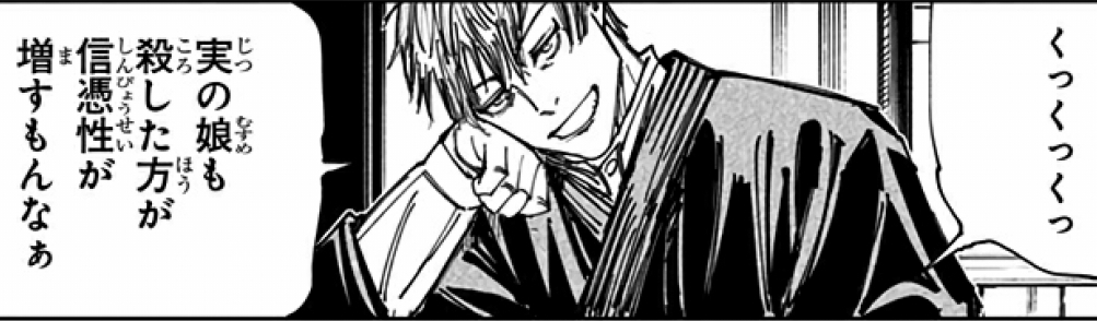 乙骨くんの「誰が虎杖君の 何?(超圧)」にムキになって反発することも、勿論ビビることなんかもなく「ちょい待って 味方やで」ってサラッと迎合しにかかって、真希ちゃんのいとこアピールして殺しづらい理由付けて自己紹介してるあたり本当に頭のキレがいい