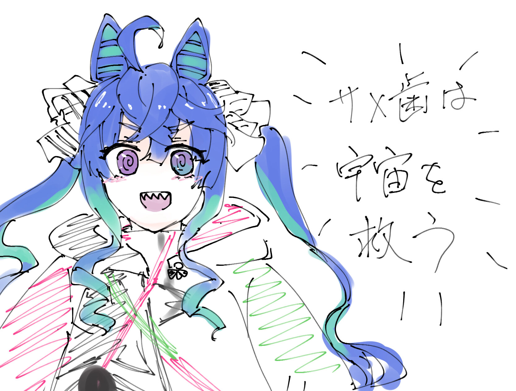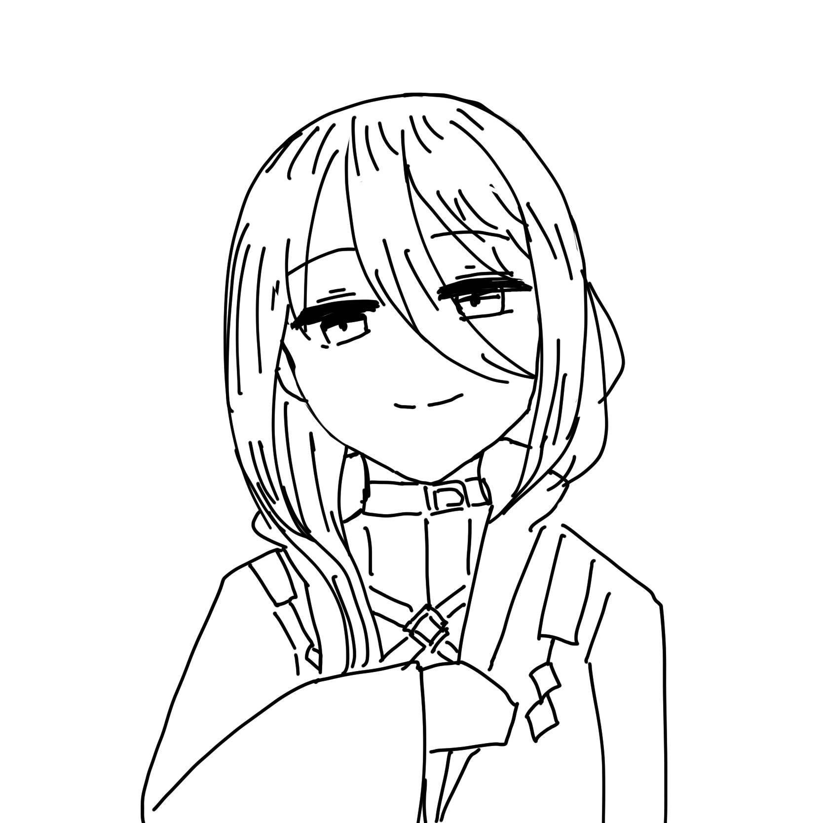 正直キャラクターの描きわけって髪の毛のそれっぽさが七割ぐらい占めてるにも関わらず前髪とかのパーツパーツを見ていくと似たり寄ったりだと思うので、これで残りのディテールだけで違和感なく変換できるようになればデフォルメマスターになれるんじゃないかなぁと思いました(素人並感)