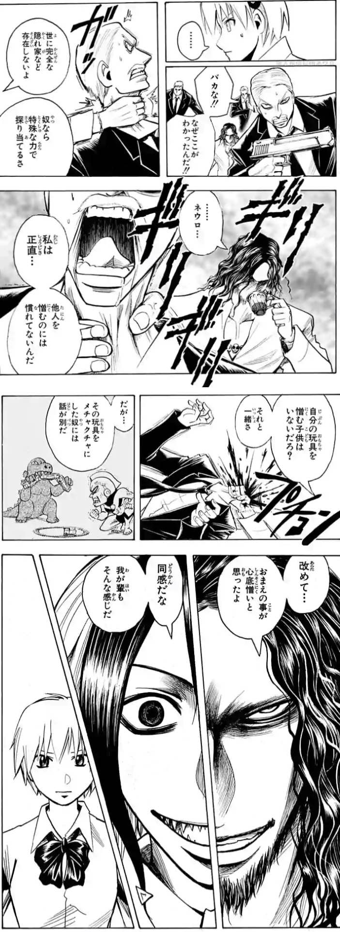 武器商人の家系だったから良い武器を作ろうがより相手のされると嫌なことをやろうに変質してそれを突き詰めた結果で、神経の作りが既にホモ・サピエンスの限界値超えかけてるんだっけ?
