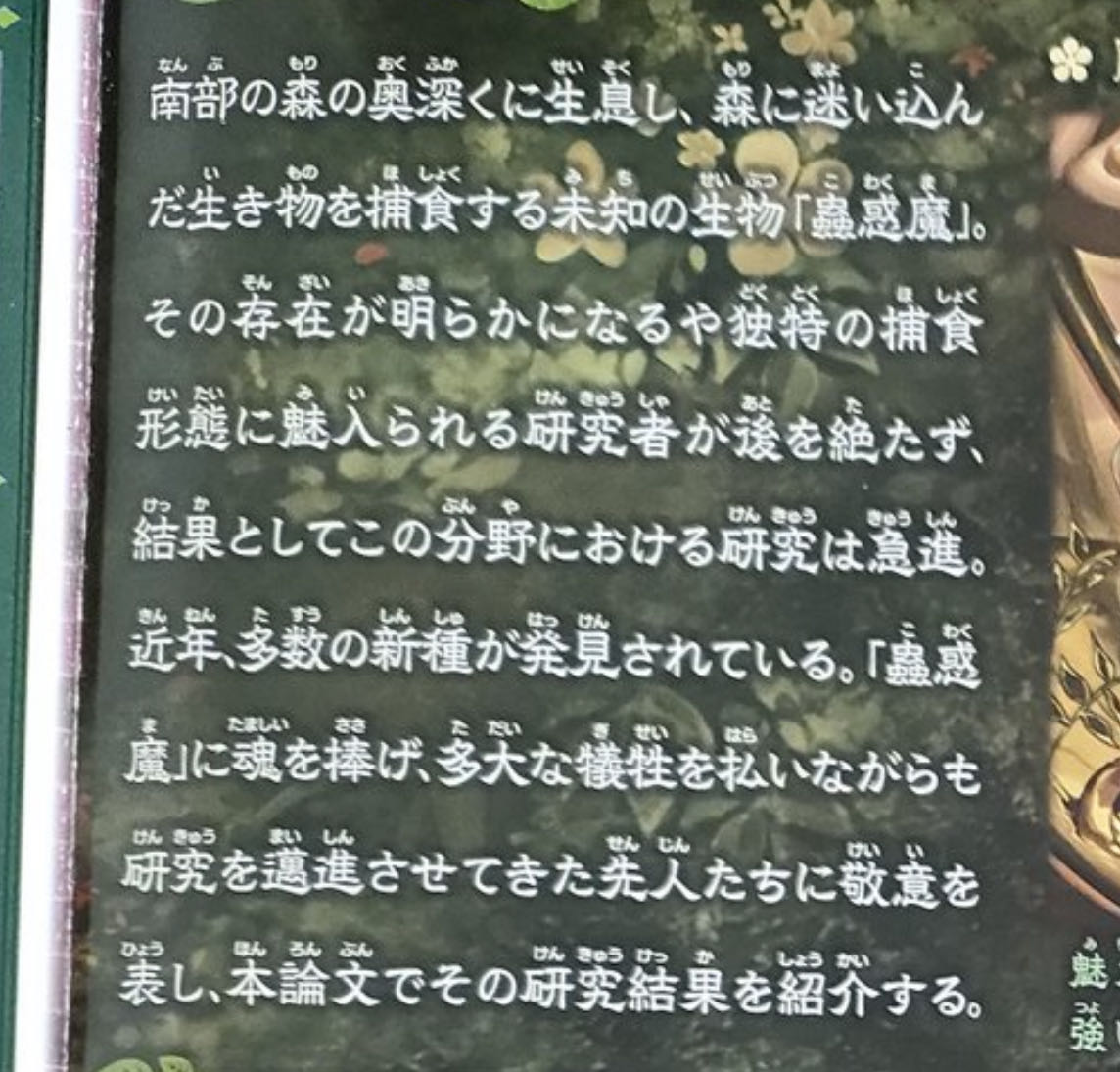 けどその生まれ故かそれとも元から後からの教育でそうした事を磨くのか、そこで生まれちゃった蟲惑魔は人食いとしての自覚が薄くてそのまま身元不明の子として過ごしてそのまま自分は人間なんだって自己認識で過ごしてくんだけど 元になった植物や昆虫に対して何かを感じているんだよね