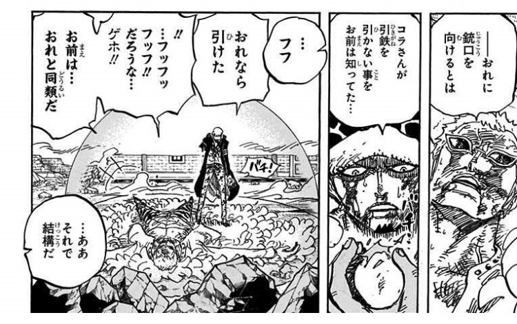 「同類だ」って言ってるセリフクロコダイルが言いきってる感じでドフラミンゴが途中少しためて言ってる感じなの意外だな