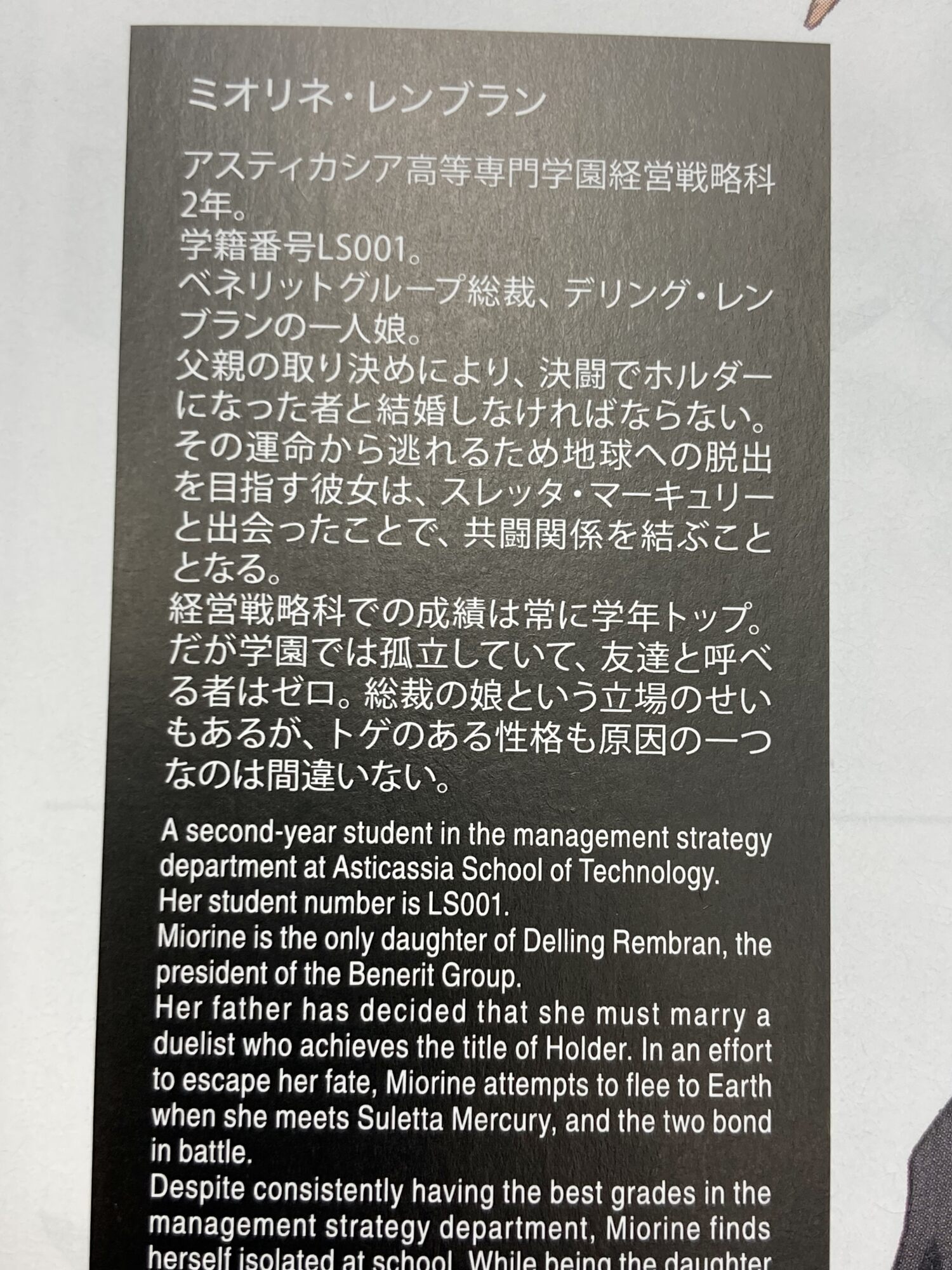 今更だがミオリネが001ってことはベネリットグループのTopが001って扱いか。グエルが001だし、少なくても3年のパイロット科にはミオリネ系列の存在はいないと。