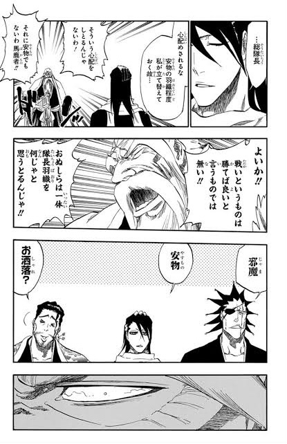 血に汚れぬ隊長羽織を来て戻って来る軟弱者など護廷隊には一人も居らぬわぁ!