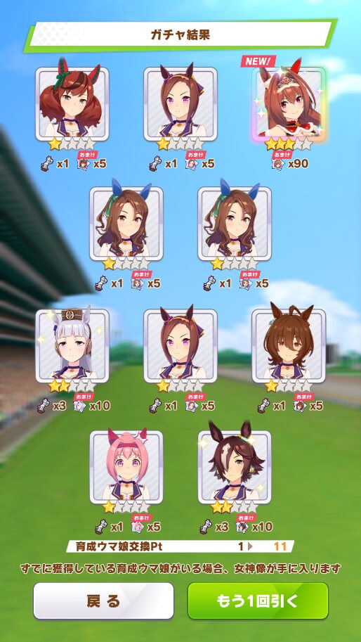 単発ウマ娘ガチャチケもあるけど、ガチャ画面貼るのだるいし石から回します