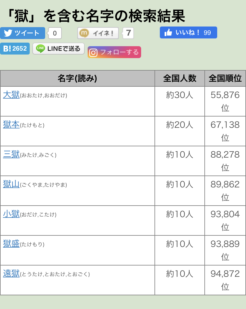 名字検索No.1/名字由来net|日本人の苗字・姓氏99%を掲載!!日本の名字(苗字)の99%を網羅する、検索No.1の姓氏情報の総合サイト。読み方や部分検索もできる。あなたの名字(姓)のルーツ、家族の由来、地名・職業由来、人数順位、都道府県・市区町村分布がわかる。かっこいい苗字、難しい、難読、かわいい、珍しい・レア、各メディアにも取り上げられた評判の名字ランキング一覧。今日誕生日の有名人。日本人のおなまえ情報のすべてがあります。かんたん家系図作成。名字相性占い。同姓同名検索。名字のYouTube。運営:ルーツ製作委員会,株式会社リクスタ 代表:小山和子。お問い合わせ:047-312-6567myoji-yurai.net - 2二次元好きの匿名さん21/10/31(日) 00:01:06