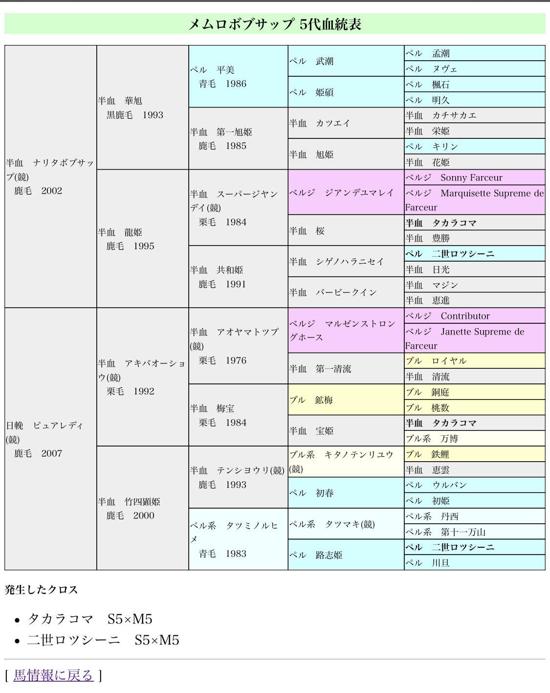 ウイポスレで再現頑張ってる人がいたから調べたら、すんごい血統表だったもん