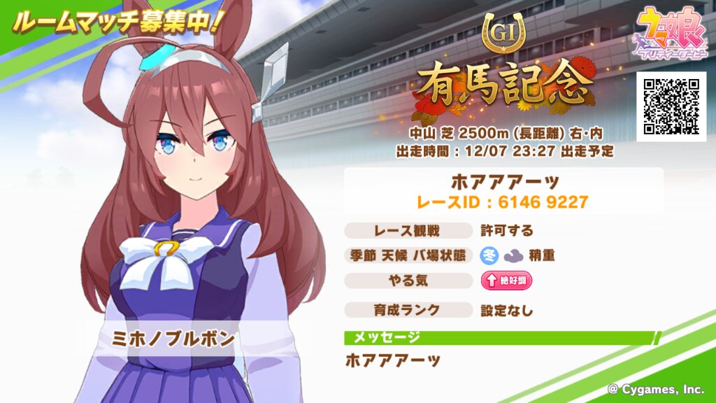 私のこのルムマはいつ出走するんですか?