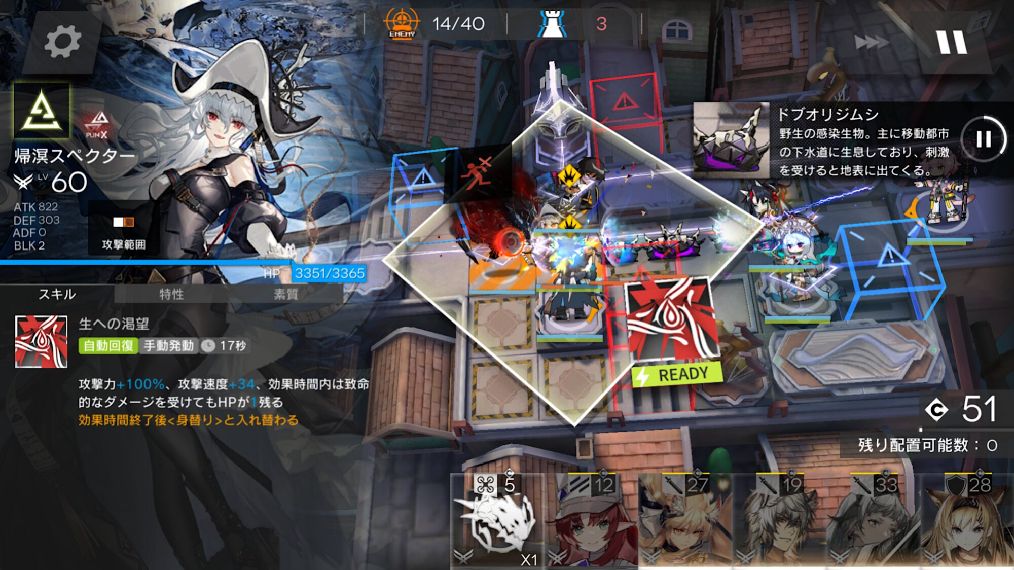 ブレイズはとにかく1ルート死守する火力の高い前衛。複数の敵をブロックして攻撃範囲マスにいる相手をまとめて叩き切る。