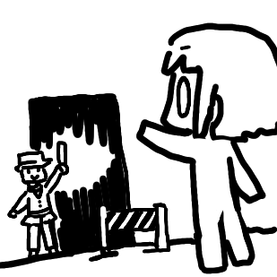 出入口の向こうは真っ黒な空間、もしくは影の強く差した廊下が広がってる