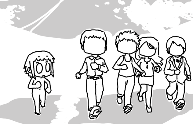 その時、自分の足にはジェット噴射機構が付いていて、周りが幾つもの線に見えるぐらいの信じられない速度で走ってた。顔や身体に息苦しいぐらいに空気を感じつつも気持ちよく走っていると、すれ違う人がいた。
