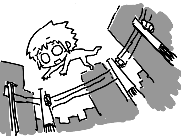 ノコギリ持ってニット帽被った怖いおじさんに追いかけられてて、逃げるために梯子みたいなのをのぼってた