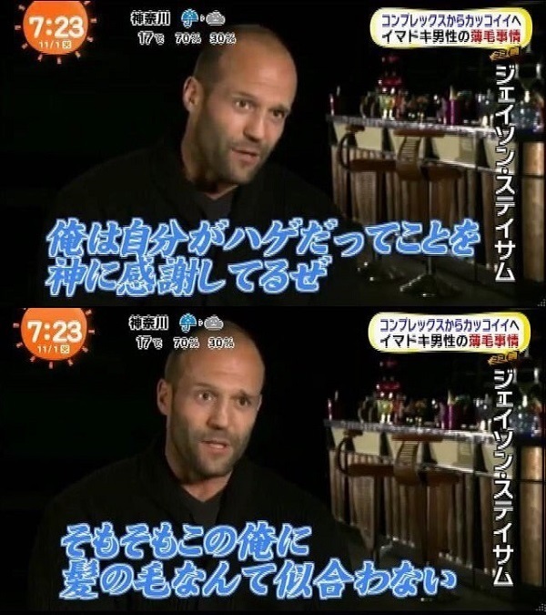 この前ブルースウイリスのスレもあったしハゲブームキテル…?