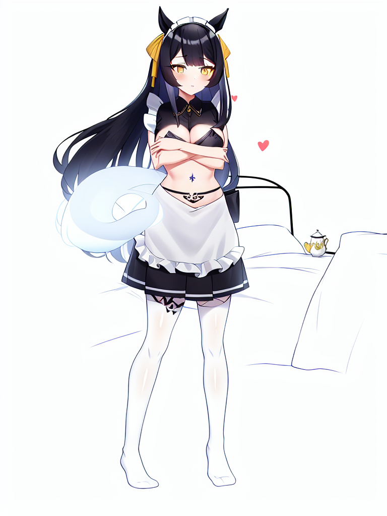 首のカーラーと蝶ネクタイでマイクロメイド服と言う無茶な要求をクリアしようとしたAI君の試行錯誤の後が見て取れて草