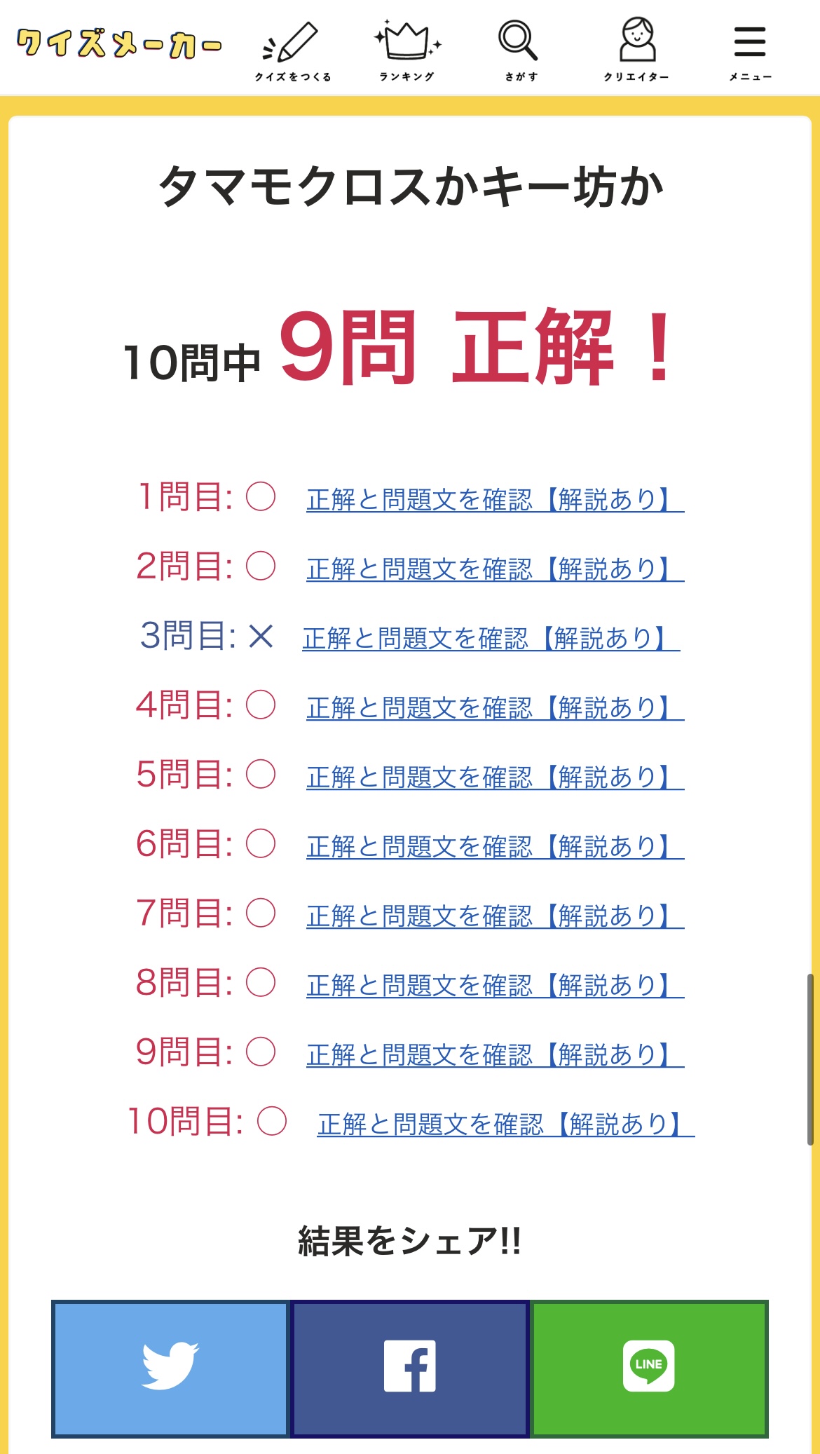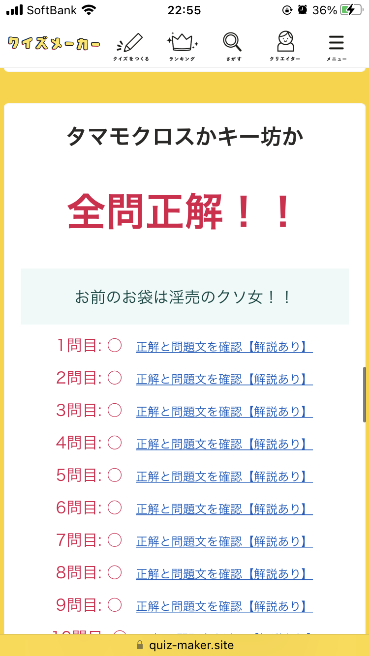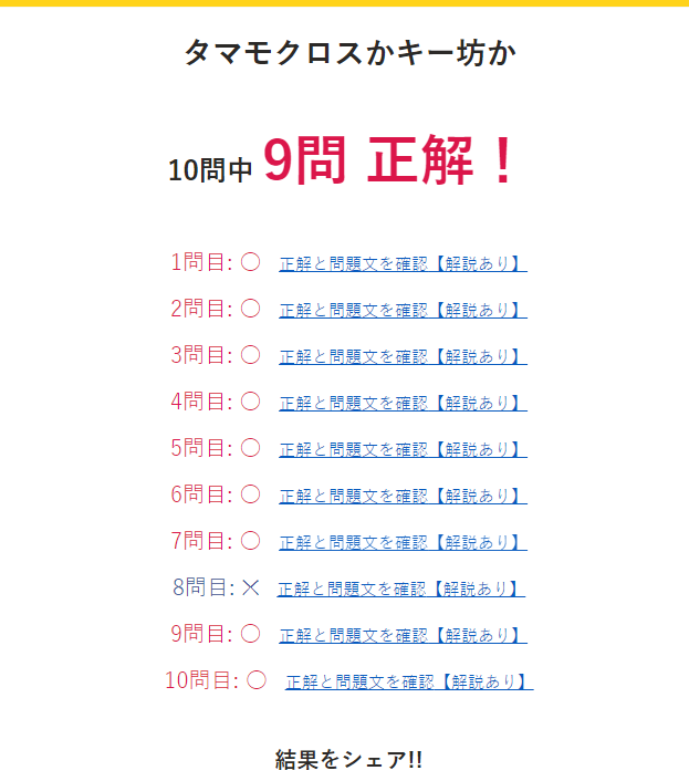 あの…自分9問正答したんスけどいいんスかこれ