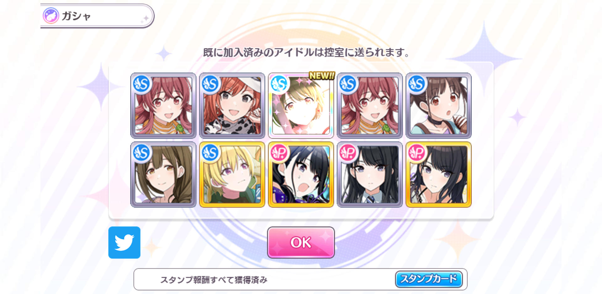 ステップアップ3種類引いたけど全部すり抜けはダブリ恒常で限定もサポ2枚しか出なかったし引かなきゃよかったぜ・・・