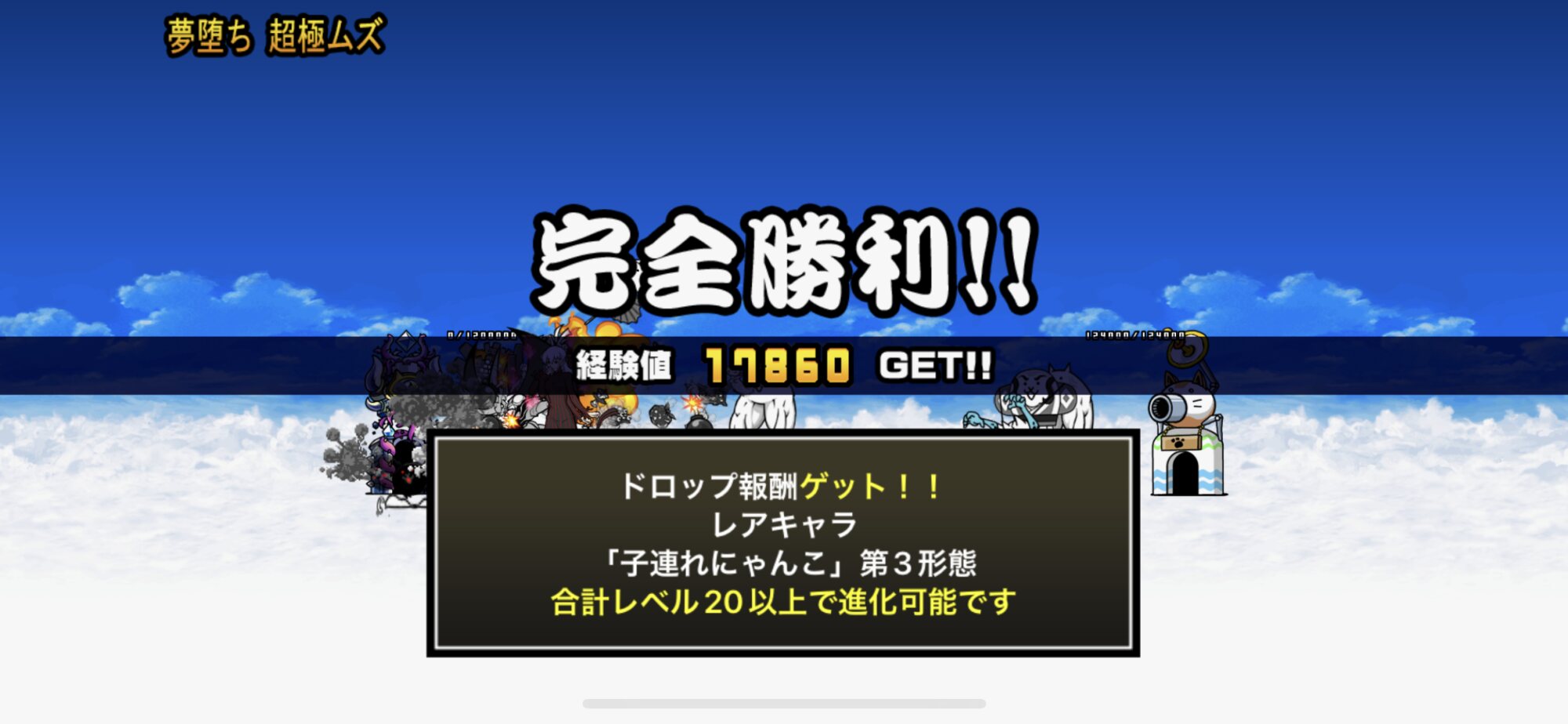 ネコビタンA2個(10秒以内退場OK)で挑戦可能(画像のボタンを押してから狂乱キモ降臨を探す)