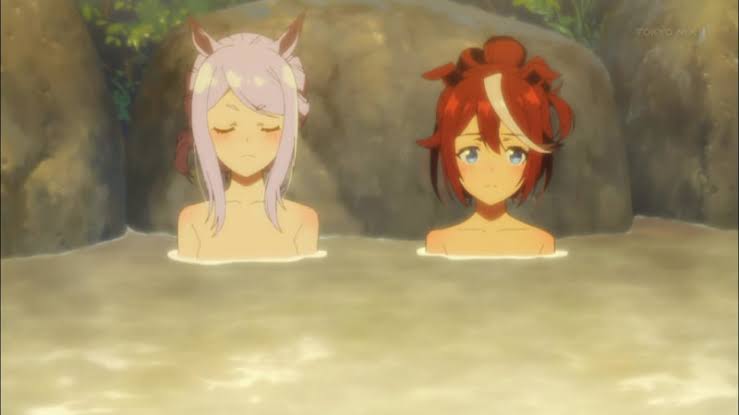 (温泉の中で無言で手を握られるテイオー)