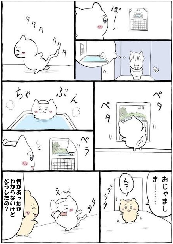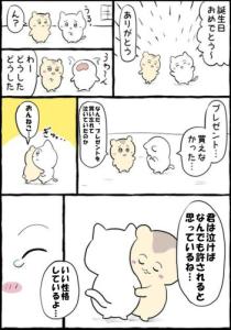 エッセイで何故か漫画描けなくなって温泉に浸かりに行って、漫画を副業にしたいって意気込んでるのがある。グッズ作ってきっちり金稼ぎしたかったのがおんねこ。おんねこ=理想像を含めた自分、がモデルなんだと思う。だからおんねこって妙に人間くさい時がある。ちいかわみたいなファンタジー妄想が出来ずに、本で詰め込んだテクニックとか考えたり、何気ない自分周りのネタを描いてるのが凄いわかる。