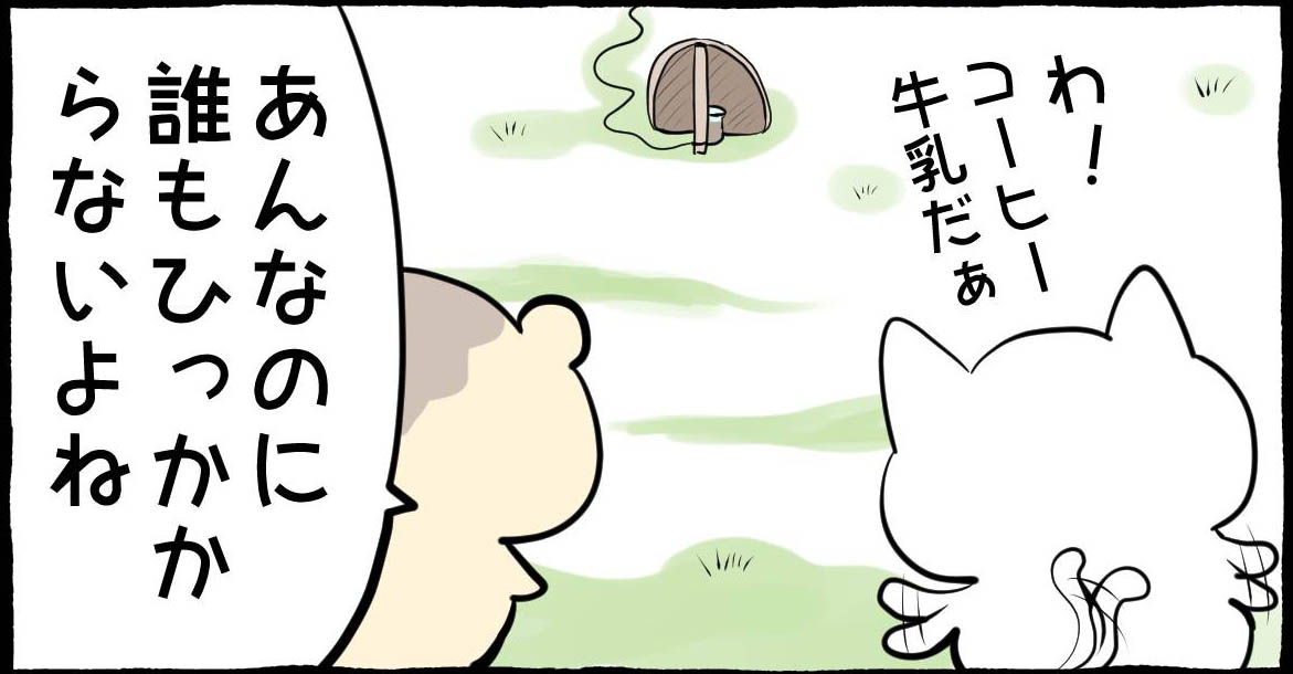 カフェでコーヒー豆切らして予備も無かったらほとんど本日の営業はできない。なのに、おんねこは寄り道しまくって豆を手に入れられない可能性があった。ししょーに怒られるって言ってるけどクビレベルでは?