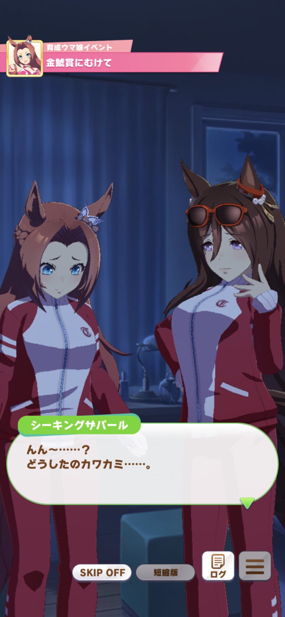 トレーナの顔を見上げてカワカミプリンセスは お願い をした。