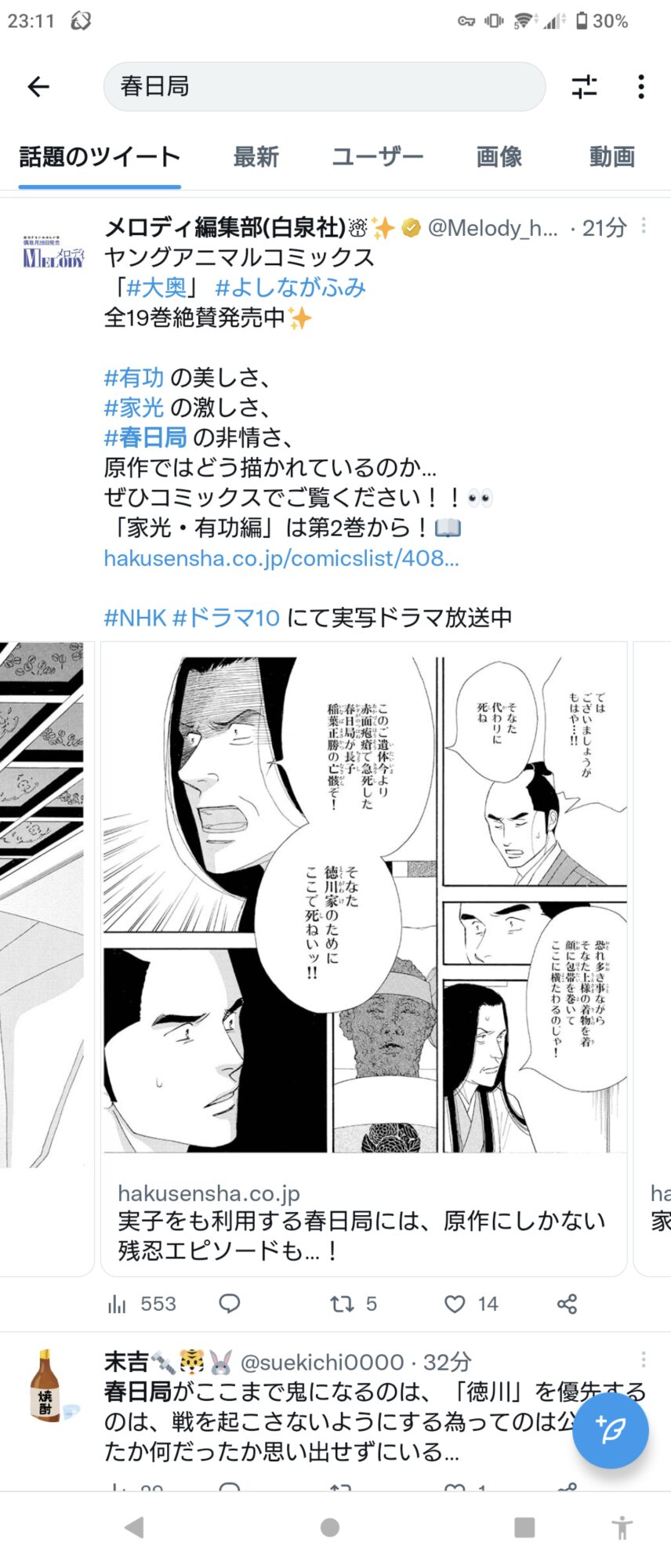 <a href="https://twitter.com/hashtag/第2回は1月17日放送" target="_blank">#第2回は1月17日放送</a> — ドラマ10「大奥」 (nhk_oooku) 2023年01月16日前スレ
