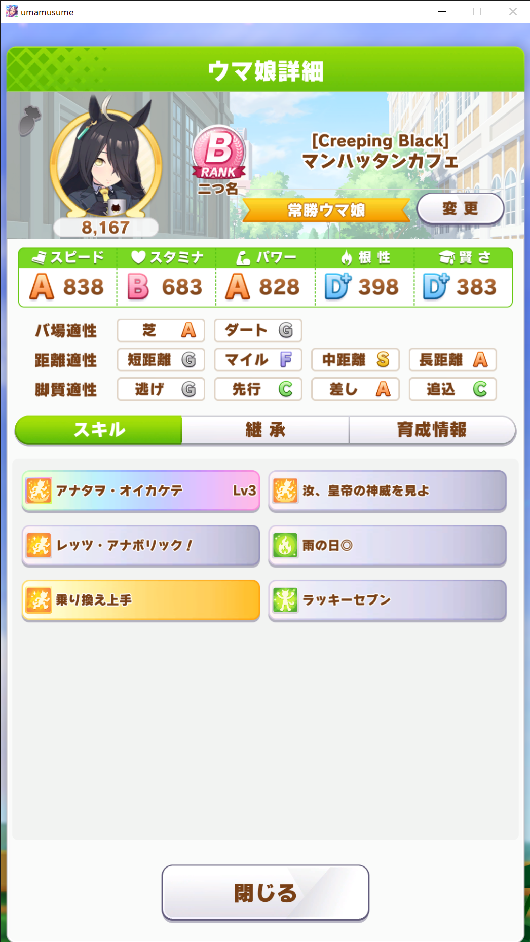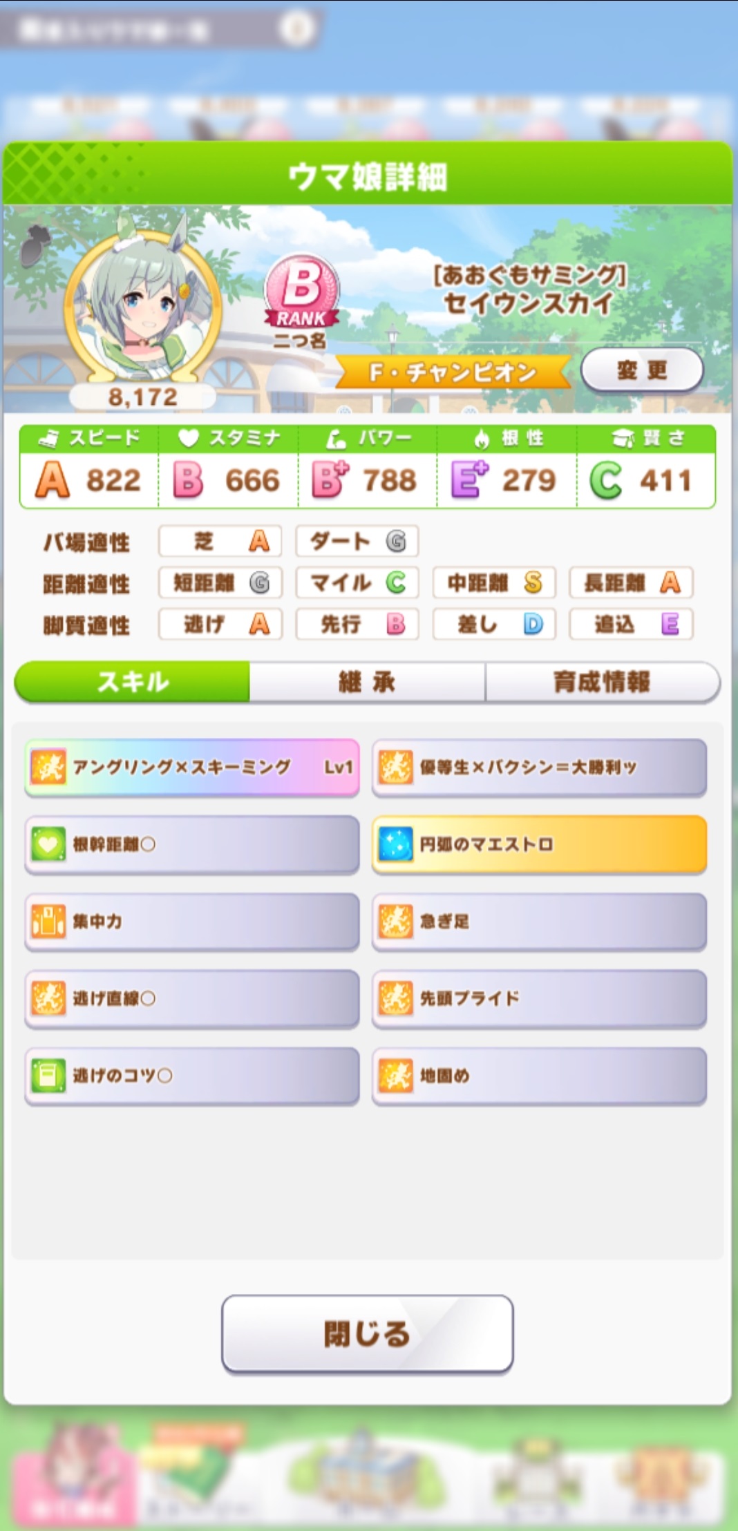 秋シチーって余分なスキルつけずにステで押しつぶすのが王道なのかな?